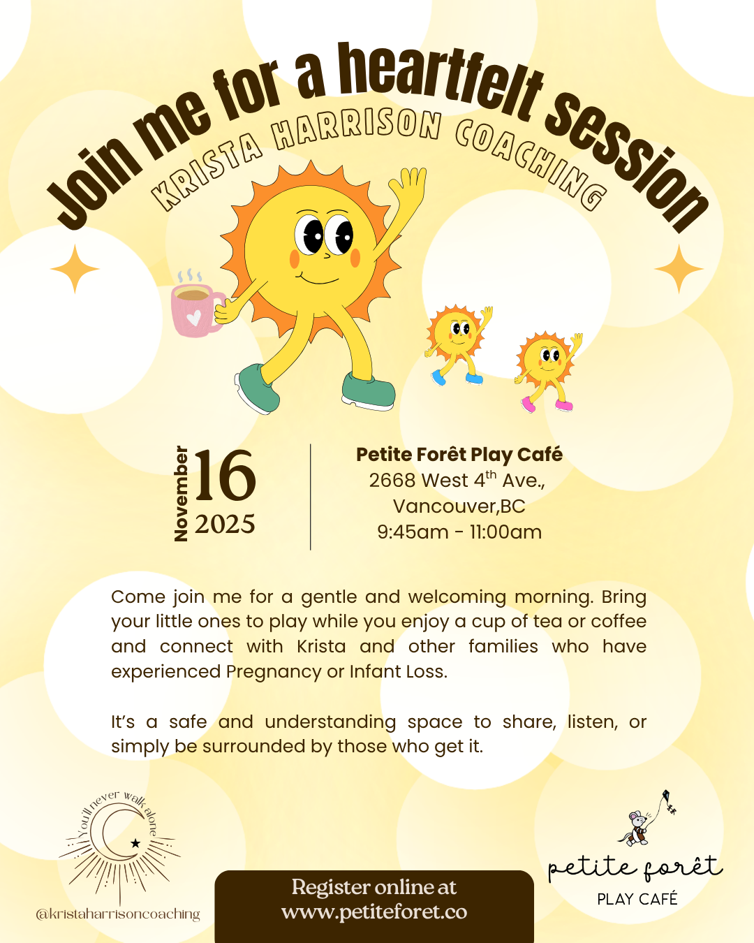 Petite Forêt Play Café is host to Krista Harrison Coaching; a safe and understanding space to share, listen, or simply be surrounded by those who get it.